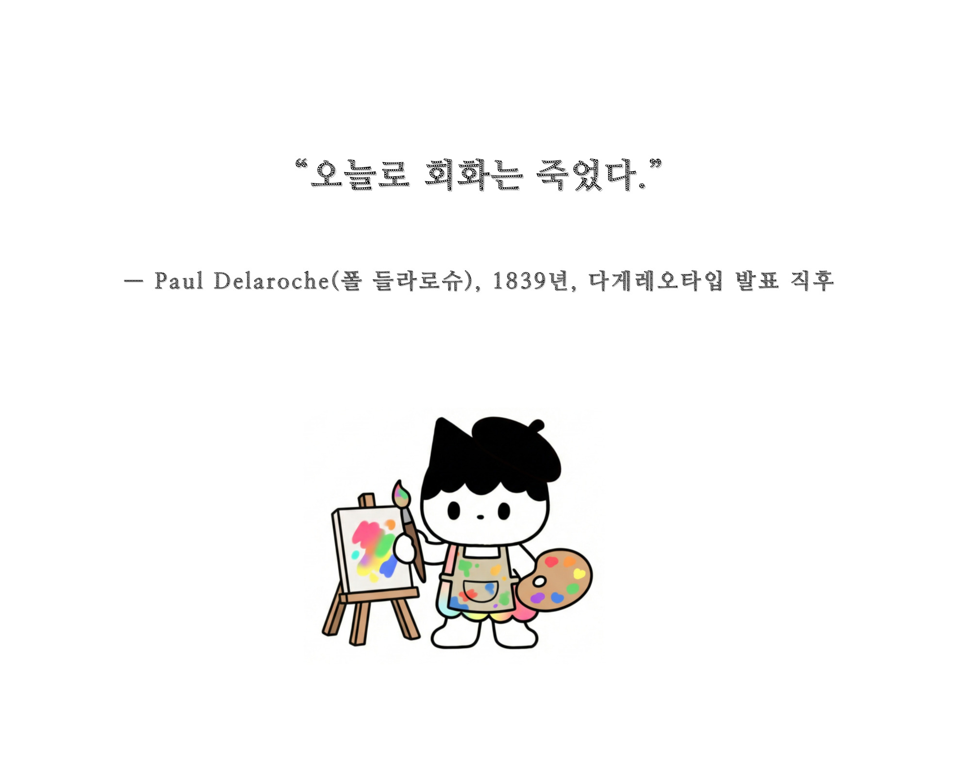 사진이 처음 등장했을 때도 충격은 비슷했습니다. 프랑스 화가 폴 들라로슈는 이렇게 선언했죠. "이날부로 회화는 죽었다."